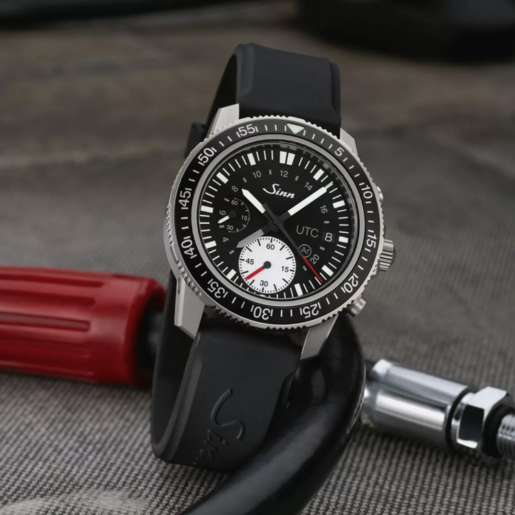 ダイビングに必要な堅牢性、機能性、そして高い精度の信頼性を持つ613 St UTCは、EZMシリーズとは異なり、リューズとプッシュボタンを右側に配置した実用的なダイビングクロノグラフです。